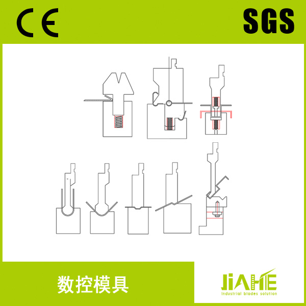 嘉禾提供全套標(biāo)準(zhǔn)折彎刀具,針對于用戶的特殊加工需求,嘉禾設(shè)計開發(fā)了很多非標(biāo)準(zhǔn)形狀的模具。滿足您的加工需求的更多信息。所提供的類型有單V模、多V模及可調(diào)節(jié)型V開口下模。保證了在整個全長上的精確折彎角度。此類型模具的開口兩側(cè)由漸進(jìn)的半徑加工而成,允許被折彎的材料更均勻地進(jìn)入下模。此獨特的設(shè)計降低了材料與下模間的摩擦。特殊折彎模具承載極大的折彎壓力而設(shè)計,盡管長期在強大的加工壓力下工作,它亦可表現(xiàn)出穩(wěn)定的加工性能及長久的生命力。